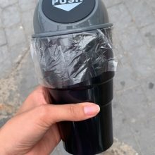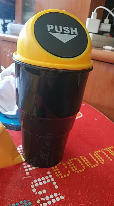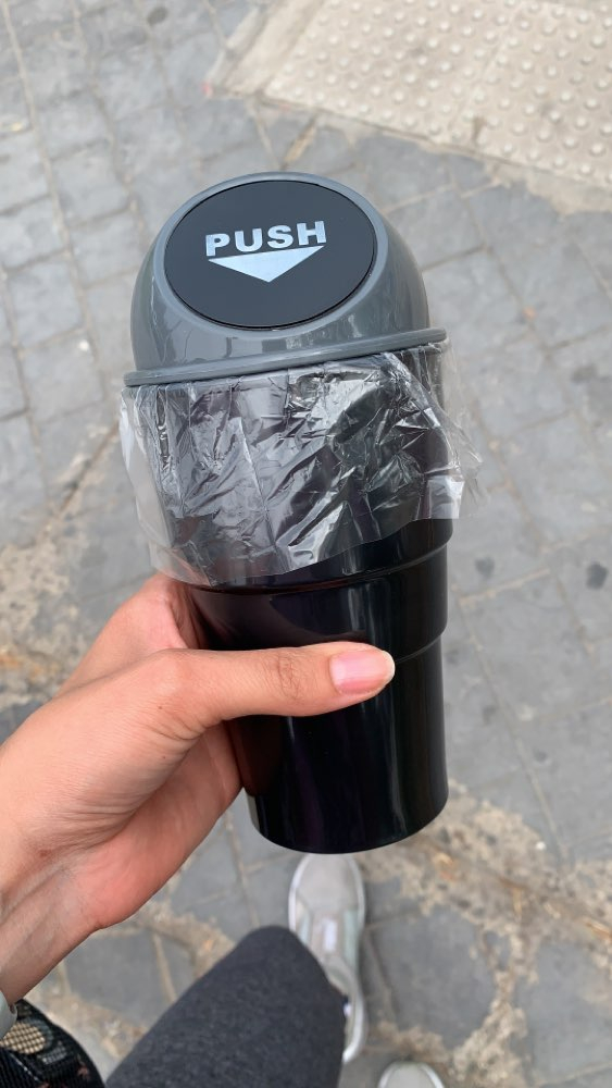 It is super easy to put your garbage into, and it is also spill-proof. The plastic cover and also be removed to facilitate cleaning.