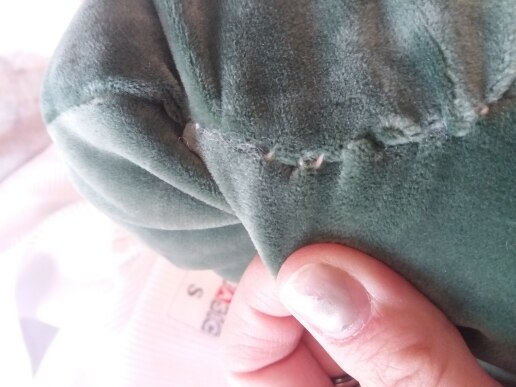 Soft, bright, but behind the seam is sloppy, also white threads...