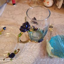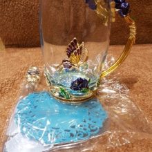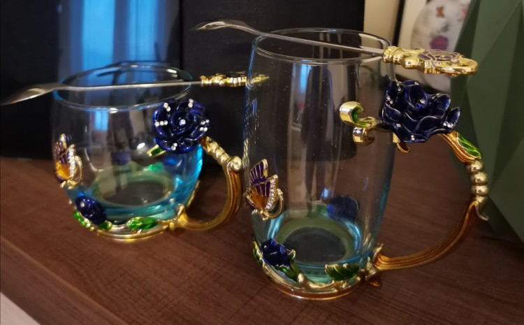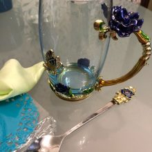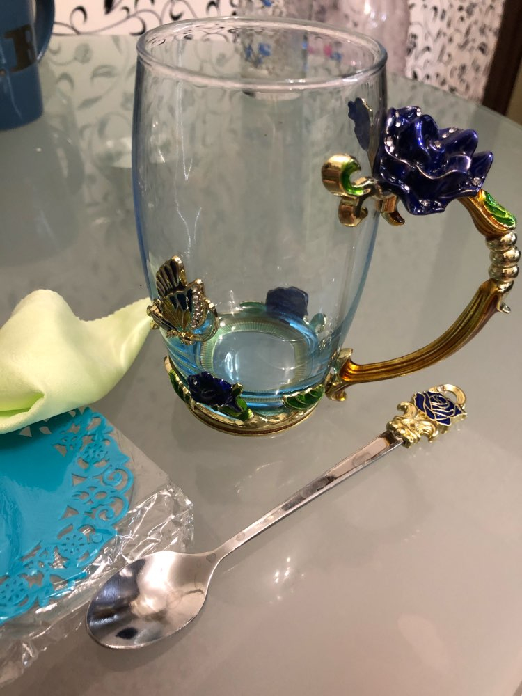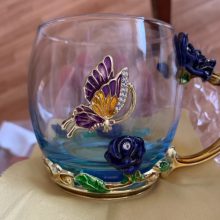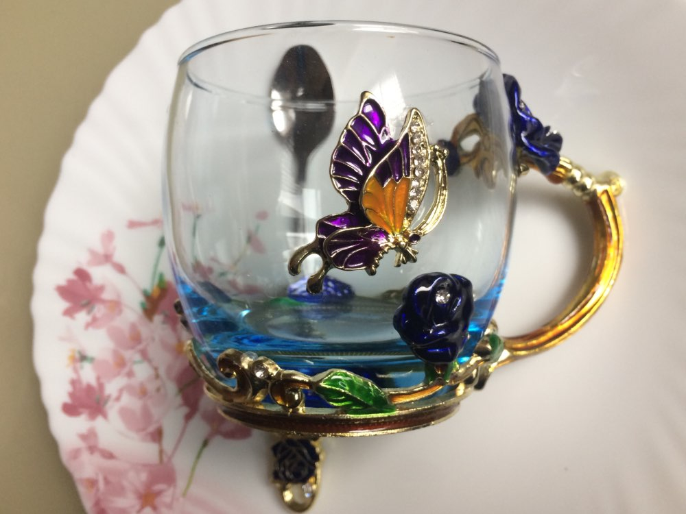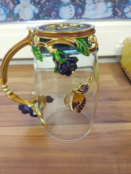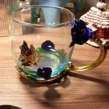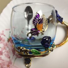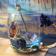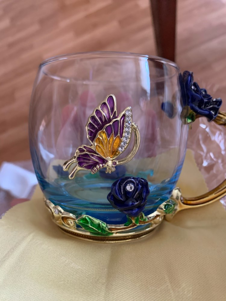 Handmade Beauty And Novelty Enamel Cup is made of high-quality eco-friendly metal and crystal clear glass, finished with crystals and enamel, this mug is a unique art between vintage, dreamy and luxurious style. It will improve your lifestyle and artistic accomplishment. Stand out with butterfly and rose flower designs on it, we believe it will become your favorite glassware, and it can even be used as a decorative piece for your kitchen and house!