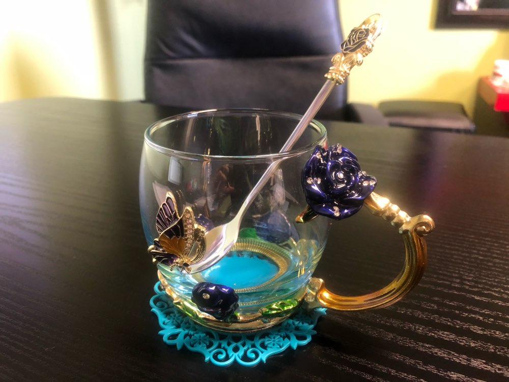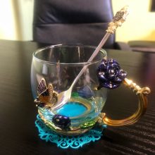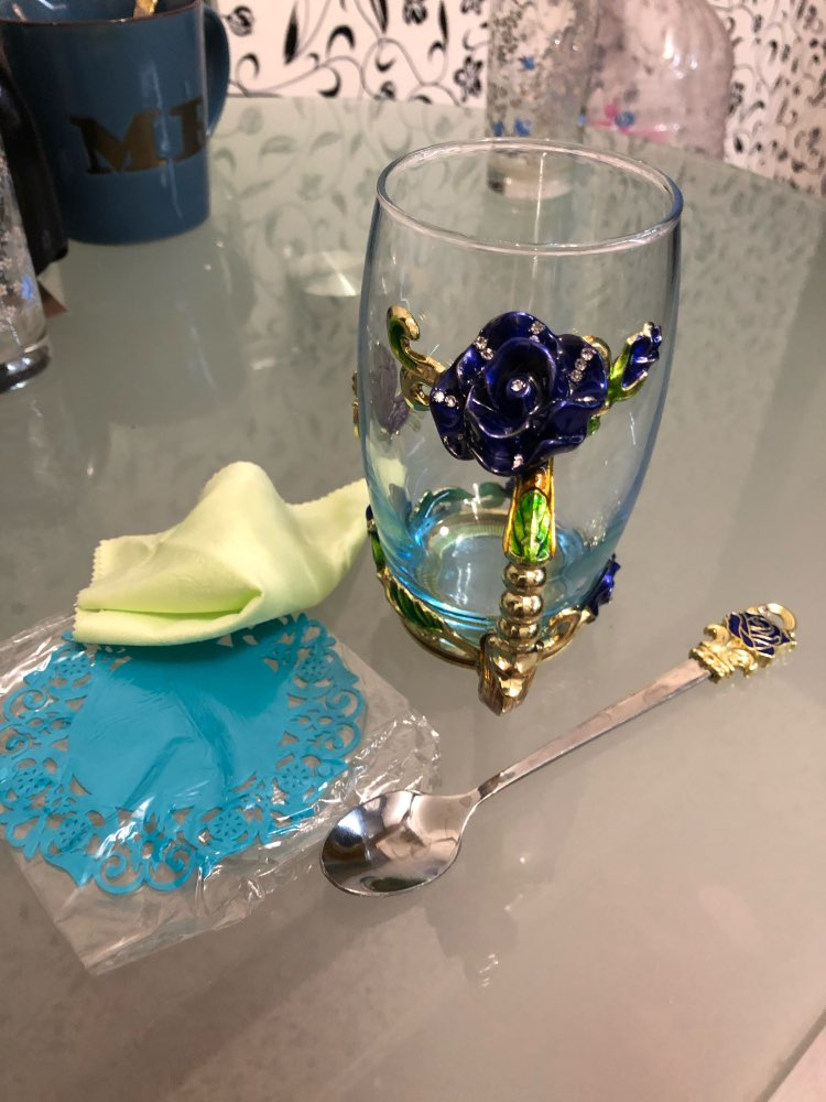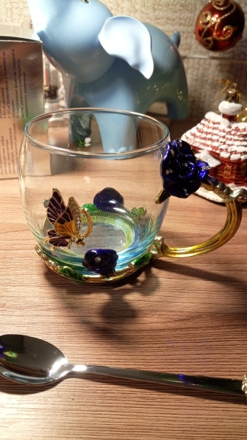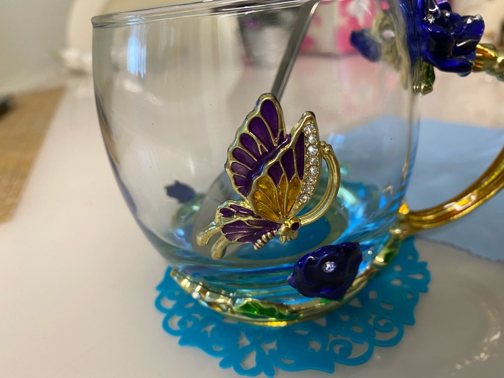PERFECT HANDMADE ENAMEL CUP: The handmade enamel glass cup has an elegant style with butterfly and rose flower 3D designs. There are no cups exactly like yours in the world. Yours is only one and will never fade as time passed, even if you use the mug daily. The glass material of the cup is glittering and translucent, classic but refined and the noble stylish look is functional yet decorative.