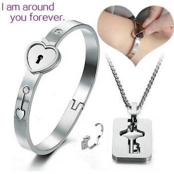 Heart Lock Bracelet & Key Necklace For Couple