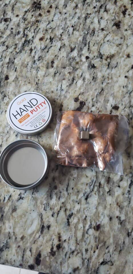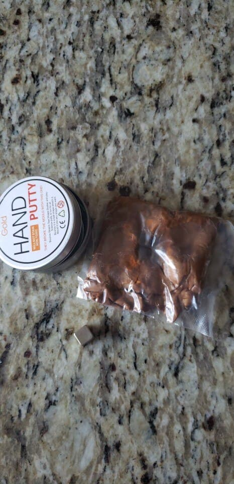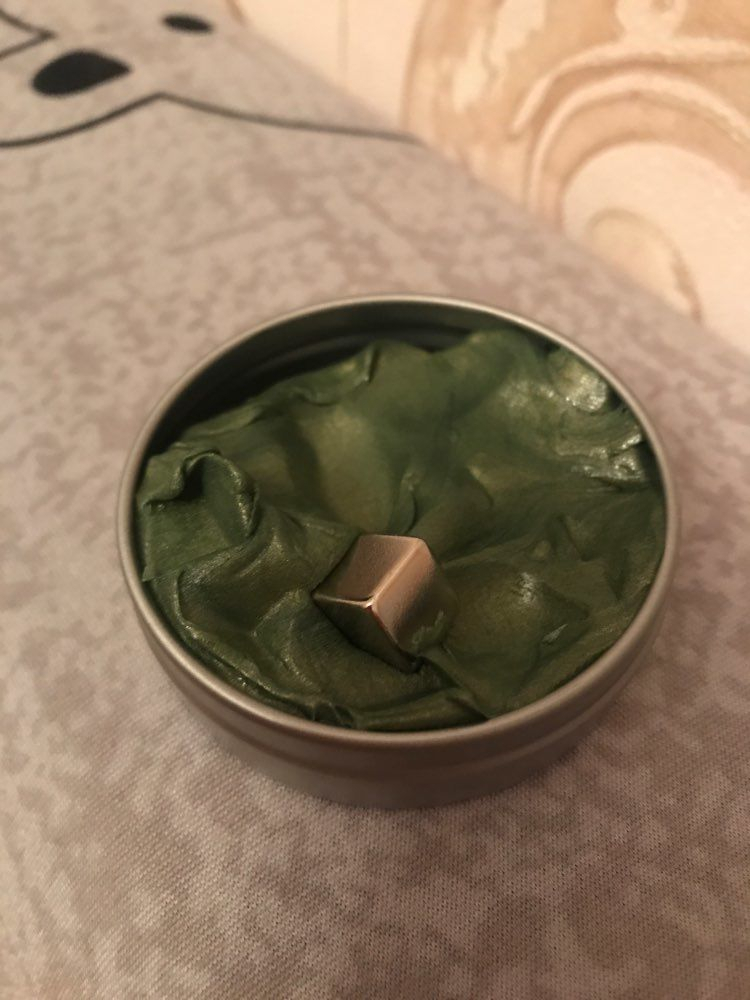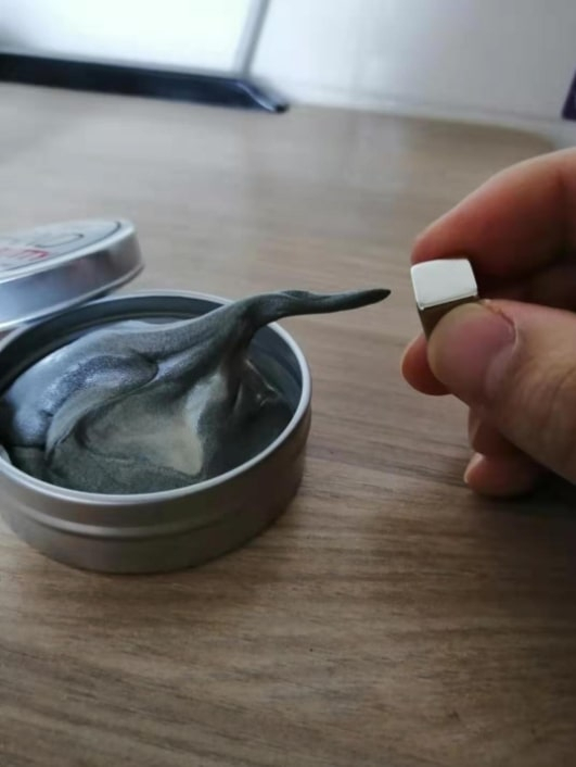 It doesn't look pretty at all when you first open it. Nothing like the pics. But work it a bit in your hands and the magnetic material seems to mix with the putty and it looks much more like the pics. So this putty is magnetic and you will find a small, square magnet inside the tin with the putty. This is the fun part. Work the putty a little and then put it on a surface. Put the magnet near it but not touching it and then watch the putty "eat and swallow" the magnet. It's weirdly mesmerizing. I bought 3 tins and have them on the coffee table. EVERYONE plays with them. There is just something about it.