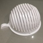My husband loves salads...would eat one every day. Problem is, I hate making salads! He saw a video of the SALAD CUTTING BOWL on a app he was using. Anxious for me to see it, saying he could make his own salads with this wonderful tool, I was sold. We have made several salads, but we haven’t tried fruit yet. I’m sure it will be just as effective. This is a great device, small enough to fit within a stack of bowls so it doesn’t take up space, and it’s super easy to clean.