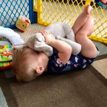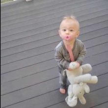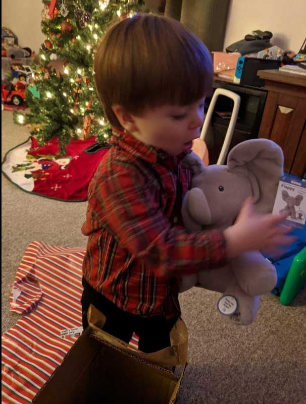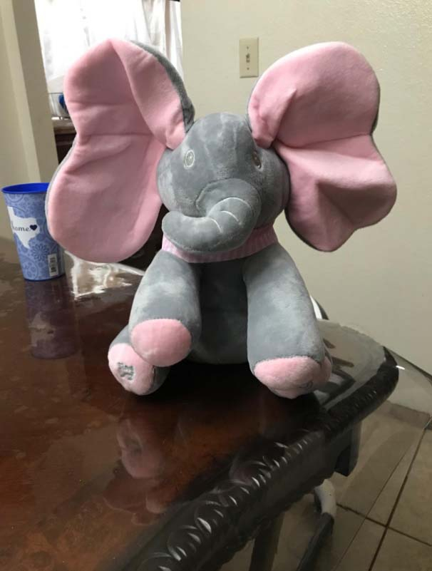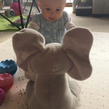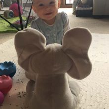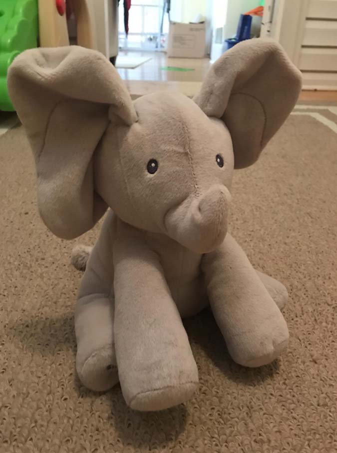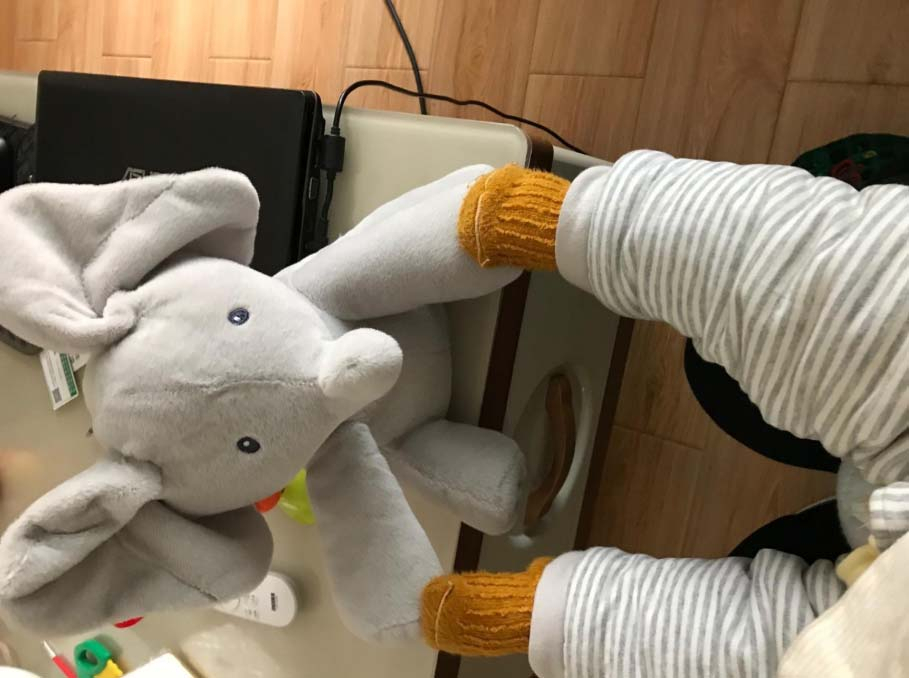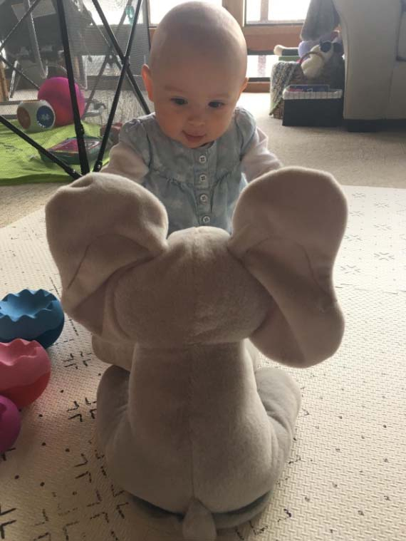 «Daisy is 6 months old and she always wants to play peek-a-boo. On a beautiful day, I found this cute elephant and I decided to give it to Daisy. Awesome! She was really excited, I am sure every child in the world is attracted to this elephant.»