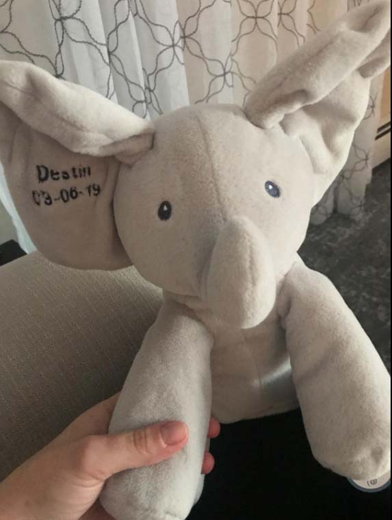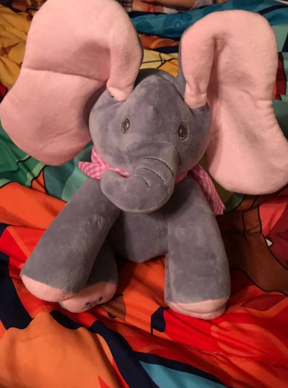3 COLORS – Choose from a gray elephant, a gray one with pink ears and feet or even gray elephant with blue ears and feet