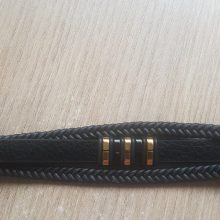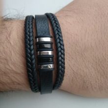 Our men’s bracelet has two leather strands on each side, creating a completely unique look. This versatile classic bracelet can not only be worn with your jeans and T-shirt, but it can also complement your look and style whether dressed for surfing on the beach or in your tux for the red carpet!