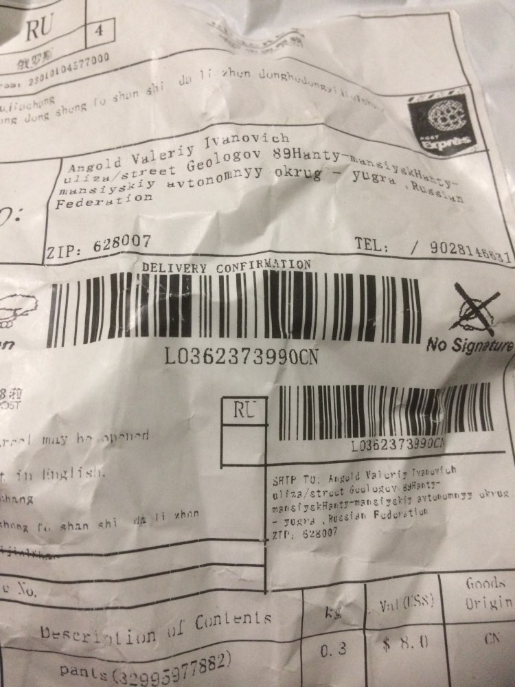 Very fast delivery. Pants with good finish and right size (height 172cm and 88 kg). Satisfied with the purchase!