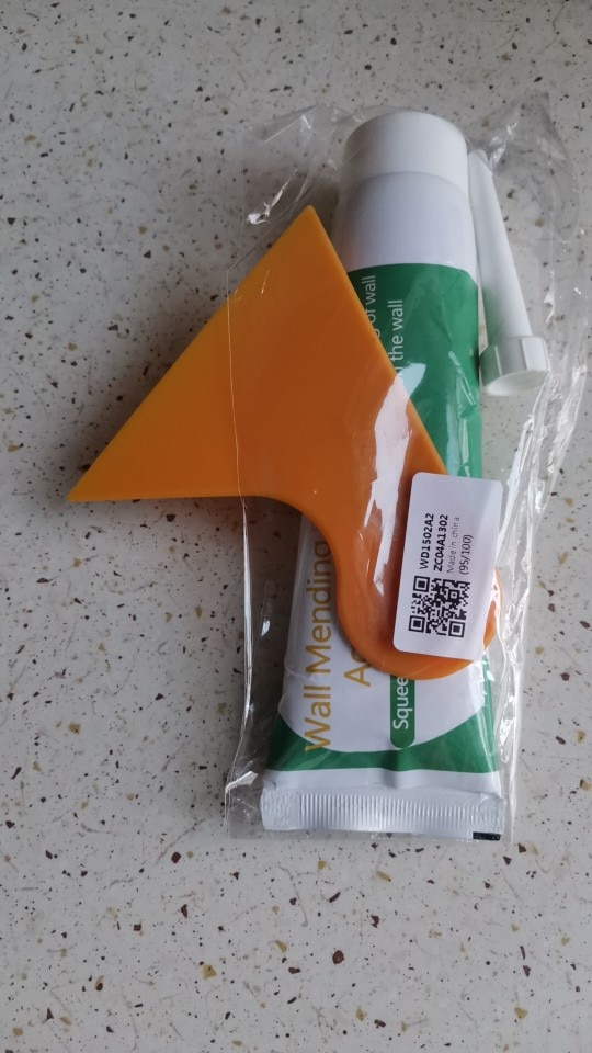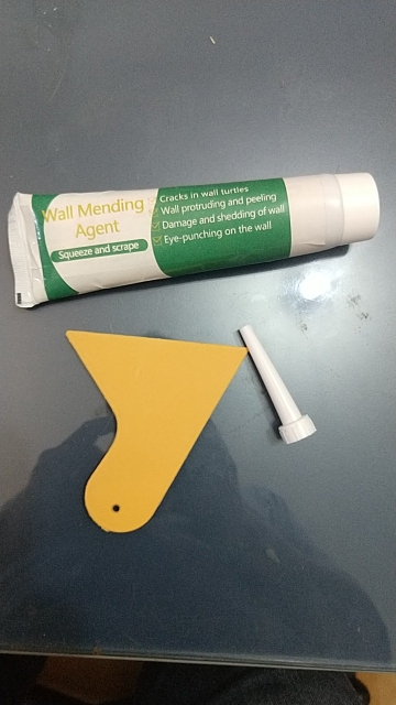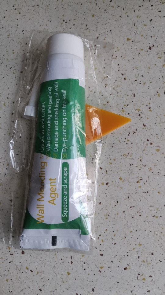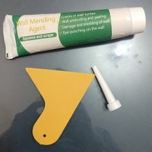Everything you need for wall mending— all in one easy tool. The product creates a quick-drying patch. It dries hard enough to hold a nail or screw. And the mending will be virtually invisible, then giving you professional-looking results.