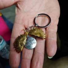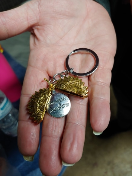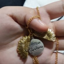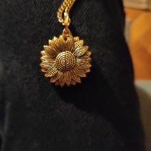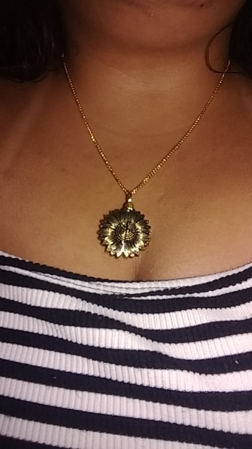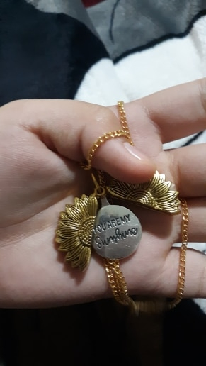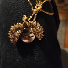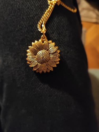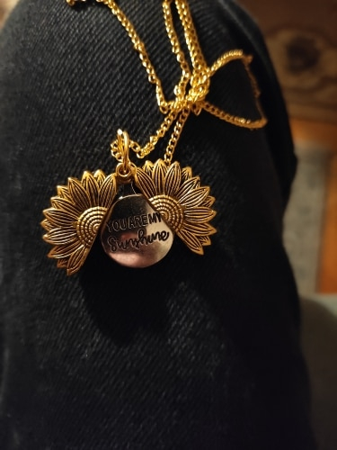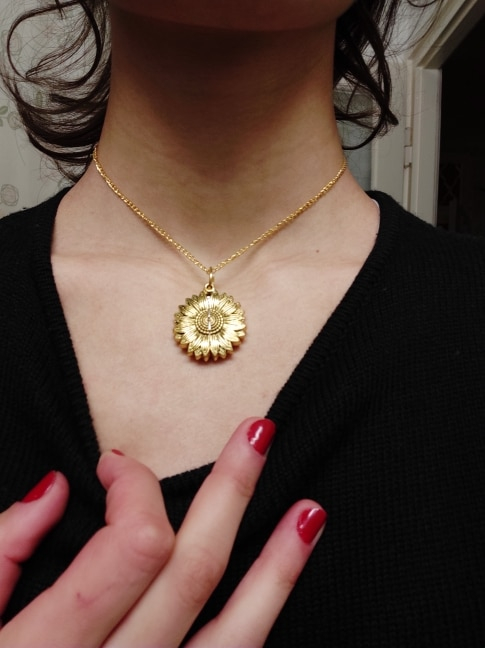 The sunflower locket opens up to reveal the loving words «You Are My Sunshine»
